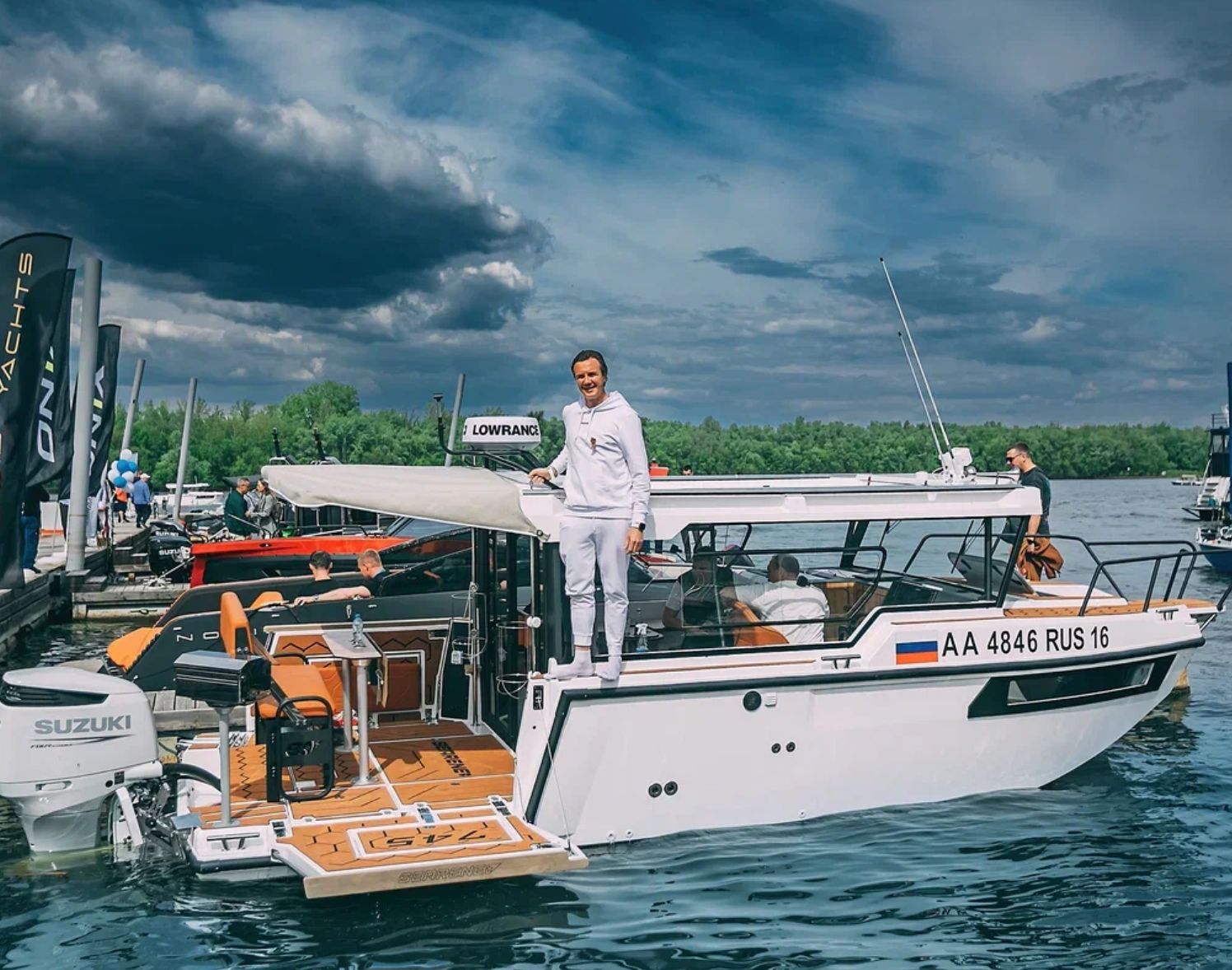 Производитель из Татарстана Searene Yachts покажет обновленный катер Searene 745 Crew Cabin — удачный баланс технических и пространственных решений, полноценный мини-круизер с отдельной носовой каютой, гальюном, носовым кокпитом с диваном, обитаемой крышей с «солярием» и раскрывающимися бортами в кормовом кокпите, служащими для создания еще большей зоны отдыха. Кроме того, в этом году верфь покажет новую модель — Searene 745 Space+. При той же длине 7,45 м катер располагает дополнительной кормовой каютой и традиционными для верфи откидывающимися бортами.